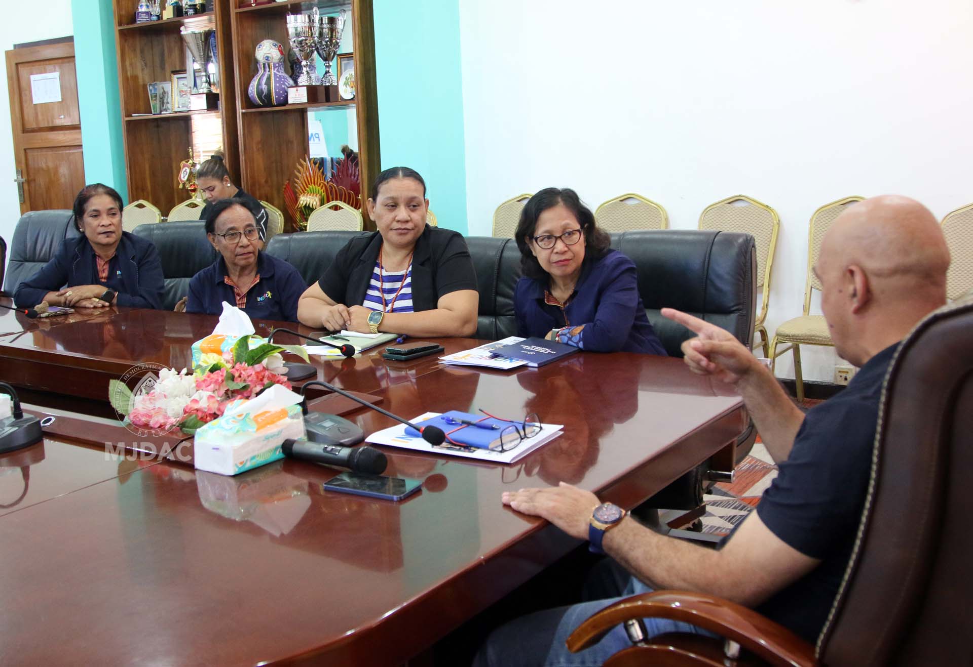 DILI, 5 Setembru 2025 – Institutu Nasionál ba Defeza Direitu Labarik (INDDICA) halo Audiénsia ho Vise Primeiru-Ministru II Interinu, ne’ebé asume knaar hosi Ministru Juventude, Desportu, Arte no Kultura (MJDAK), Nelyo Isaac Sarmento. Enkontru ne’e hala’o ohin, iha Sala Magna, edifísiu MJDAK, Lecidere.